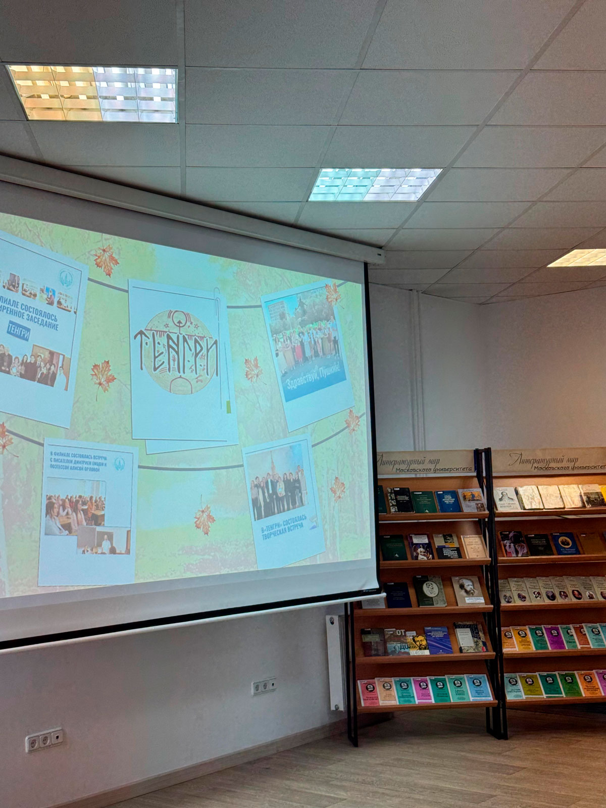 23 сентября 2025 года прошло первое в новом учебном году открытое заседание литературного клуба «Тенгри», ставшее первым мероприятием в рамках международного фестиваля «Наука 0+» в Казахстанском филиале МГУ. Во встрече приняли участие студенты и преподаватели кафедры филологии. В рамках встречи библиотекой Филиала также была подготовлена выставка «Литературный мир Московского университета», где были собраны труды учёных-литературоведов МГУ имени М.В. Ломоносова.