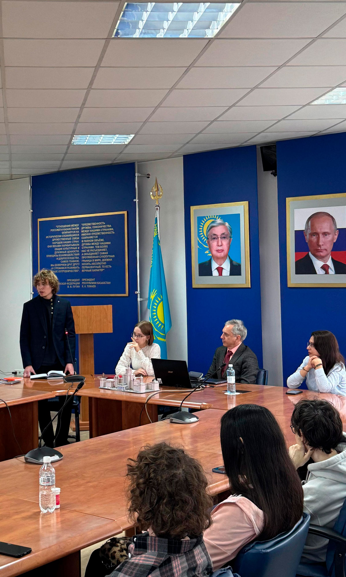 23 сентября 2025 года прошло первое в новом учебном году открытое заседание литературного клуба «Тенгри», ставшее первым мероприятием в рамках международного фестиваля «Наука 0+» в Казахстанском филиале МГУ. Во встрече приняли участие студенты и преподаватели кафедры филологии. В рамках встречи библиотекой Филиала также была подготовлена выставка «Литературный мир Московского университета», где были собраны труды учёных-литературоведов МГУ имени М.В. Ломоносова.