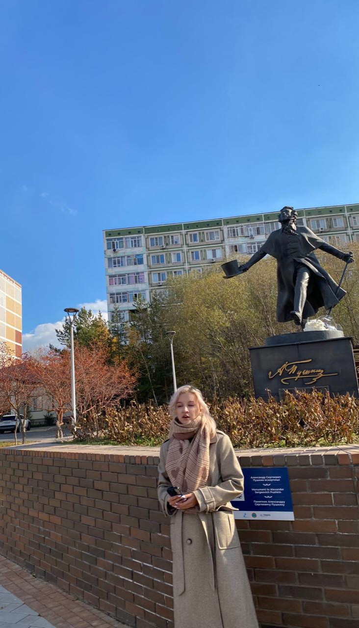 Заведующая кафедрой филологии Г. И. Власова рассказала первокурсникам об истории Лицея, его известных выпускниках и зарождении традиции празднования Дня лицеиста. Профессор Т. В. Кривощапова рассказала об истории самого памятника, воздвигнутого в Астане к 200-летию поэта в 1999 году. Студенты узнали, что и выпускники Казахстанского филиала любят посещать это памятное место, которое символизирует верность традиции и преданность искусству слова.