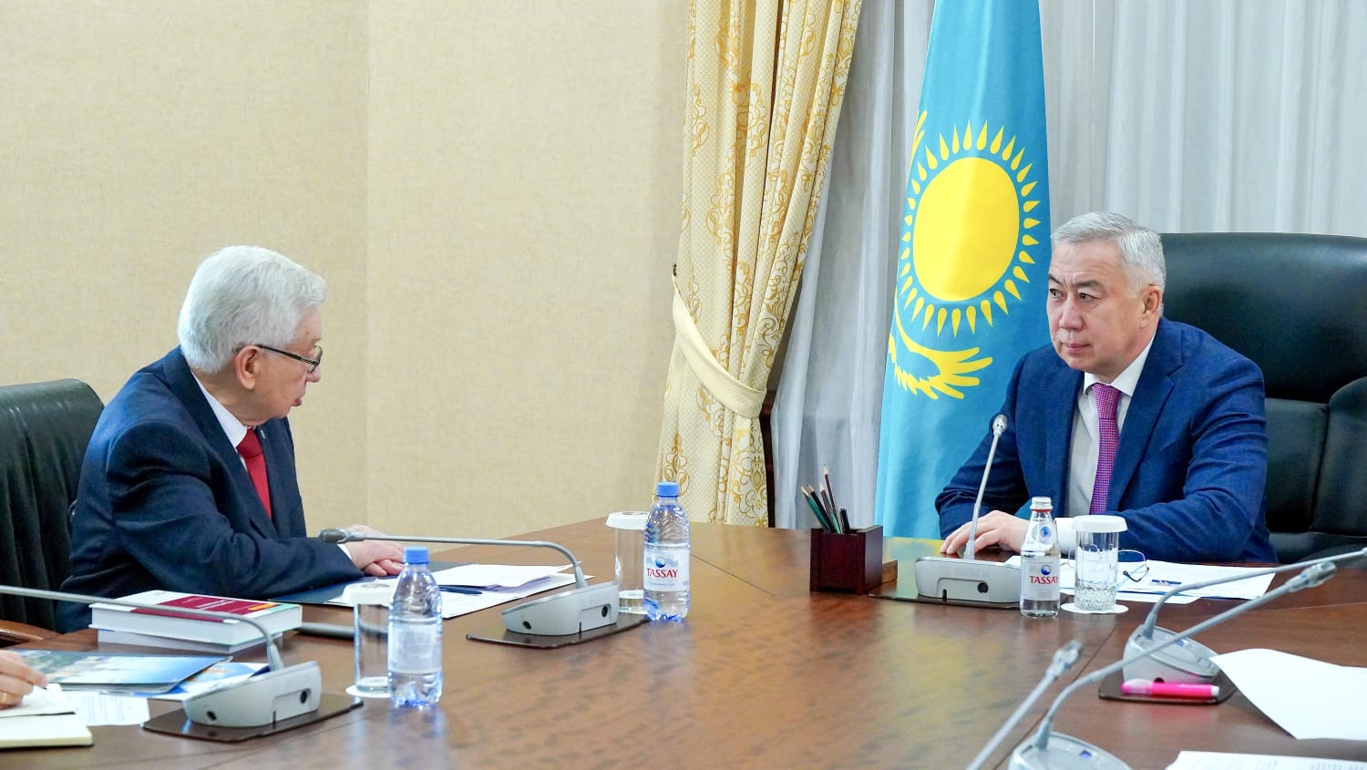 Заместитель Премьер-министра – министр национальной экономики Республики Казахстан Серик Макашевич Жумангарин встретился директором Казахстанского филиала МГУ, Почетным профессором Московского университета Александром Владимировичем Сидоровичем.