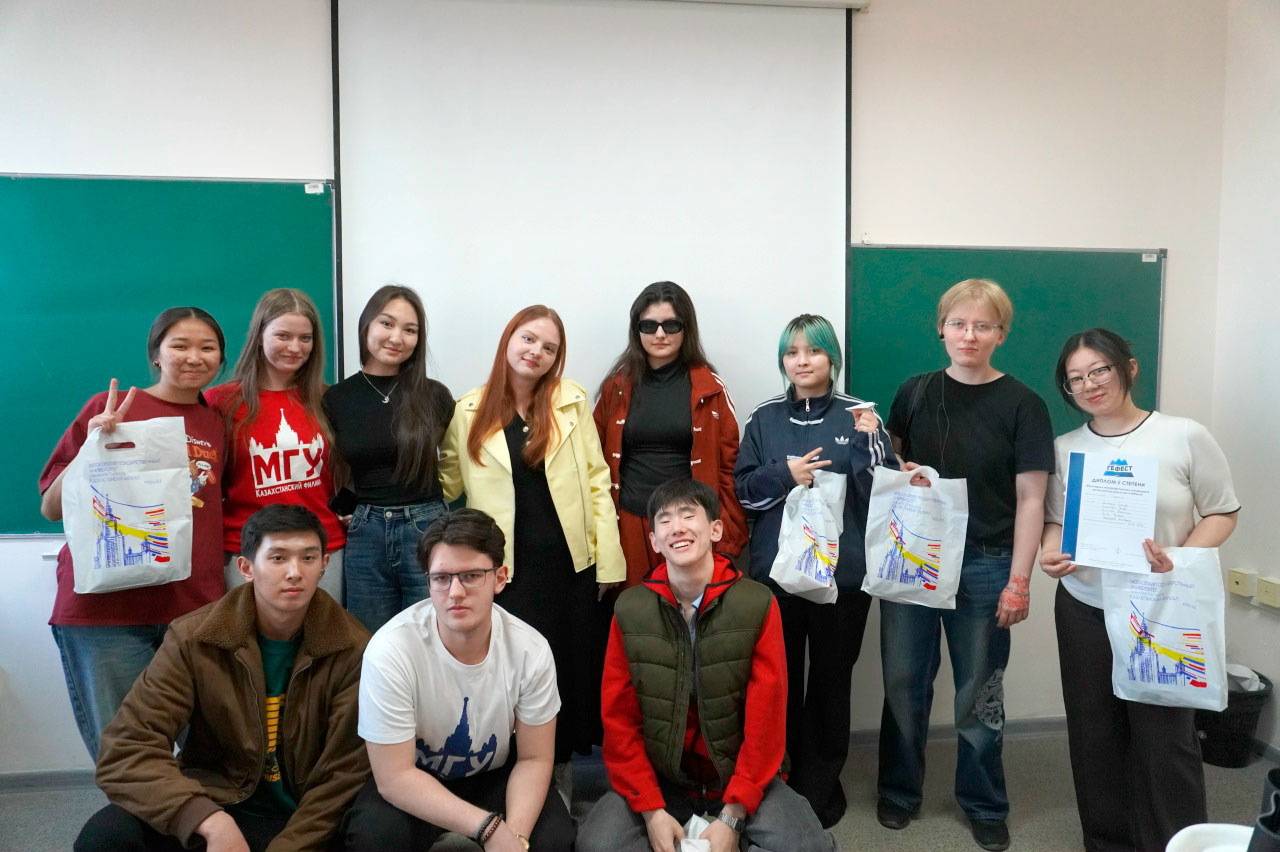 Дипломы и памятные призы с символикой Казахстанского филиала МГУ получили: